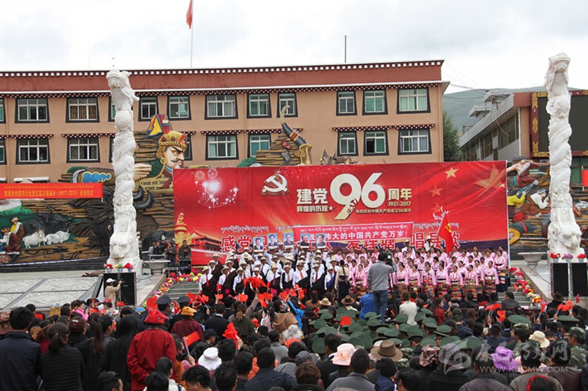該縣縣級機關(guān)、駐軍部隊、援藏工作組、退休干部等組成的十支代表隊參加了比賽。衛生代表隊的一首《洗衣歌》拉開(kāi)了活動(dòng)序幕,盡情抒發(fā)藏區人民與人民子弟兵的魚(yú)水親情;援藏代表隊的一曲《團結就是力量》道出了新都、金堂與理塘齊心加快發(fā)展的“兄弟之情”;《中國朝前走》《理塘贊歌》表達了黨政代表隊愛(ài)祖國、愛(ài)家鄉的不變情懷;《雪域警魂青春不老》《祖國不會(huì )忘記我》展現了高原衛士金盾豪情;教育代表隊激情演唱的《把最美的歌獻給媽媽》把活動(dòng)推向了高潮;老干部代表隊傾情演唱的《再唱山歌給黨聽(tīng)》贏(yíng)得了在場(chǎng)觀(guān)眾起經(jīng)久不息的掌聲。歌詠會(huì )上,來(lái)自機關(guān)單位和縣城駐地高城鎮2000余干部群眾跟著(zhù)歌聲的節奏,揮舞著(zhù)手中的國旗、黨旗,為黨慶生、為黨祝福,表達感黨恩、愛(ài)祖國的由衷之情。最后,歌詠比賽在《沒(méi)有共產(chǎn)黨就沒(méi)有新中國》的集體大合唱中結束。