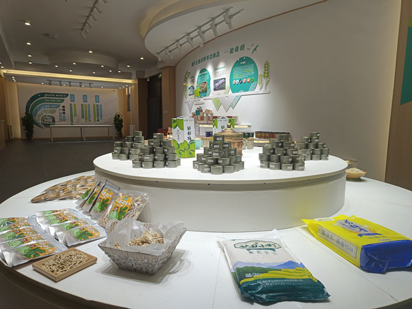 密奇奇公司大廳展臺上琳瑯滿(mǎn)目的有機產(chǎn)品。